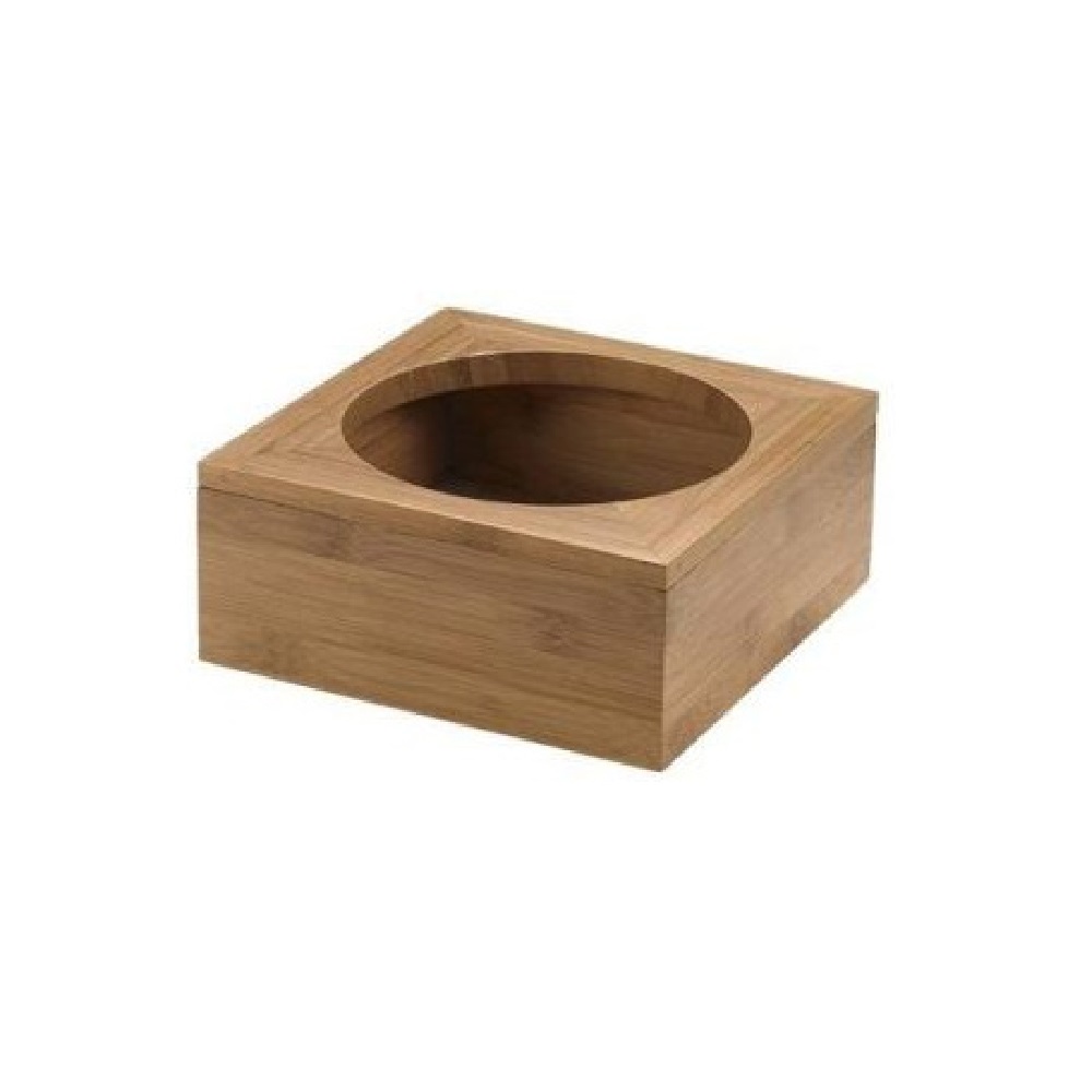 Η θήκη από bamboo για μπωλ είναι η ιδανική βάση για πιο οργανωμένο και επαγγελματικό στήσιμο σε μπουφέ ή πάγκο. Με διαστάσεις 26×26×11cm και οπή Ø22cm, προσφέρει σταθερή στήριξη του μπωλ και αναβαθμίζει την αισθητική της παρουσίασης, σε χώρους πρωινού, ξενοδοχεία, catering ή και στο σπίτι.